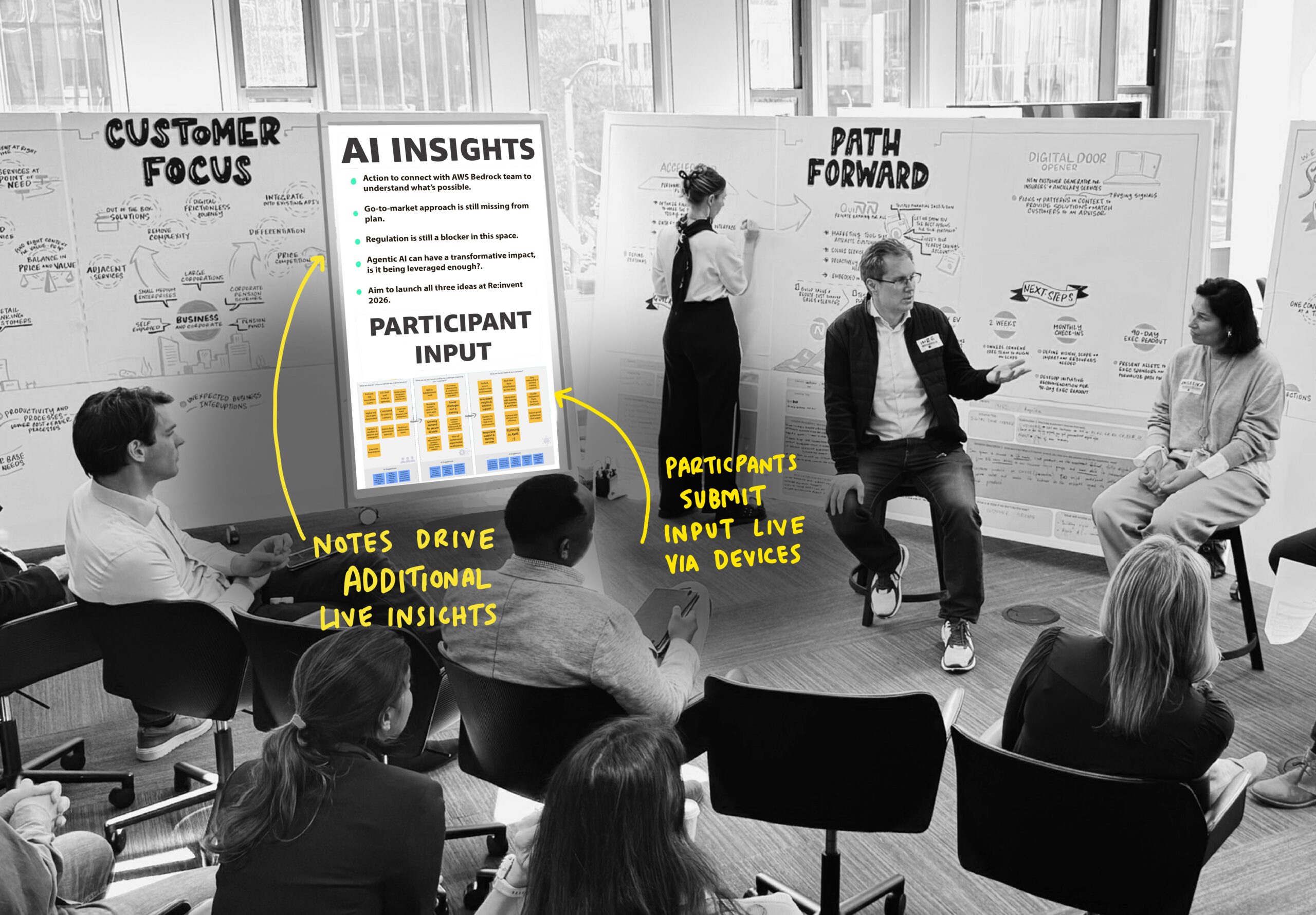 This specialized practice synthesizes highly technical concepts and executive discussions as they unfold, creating a differentiated experience that enhances group alignment, sparks collaboration, and strengthens information retention long after the session ends.